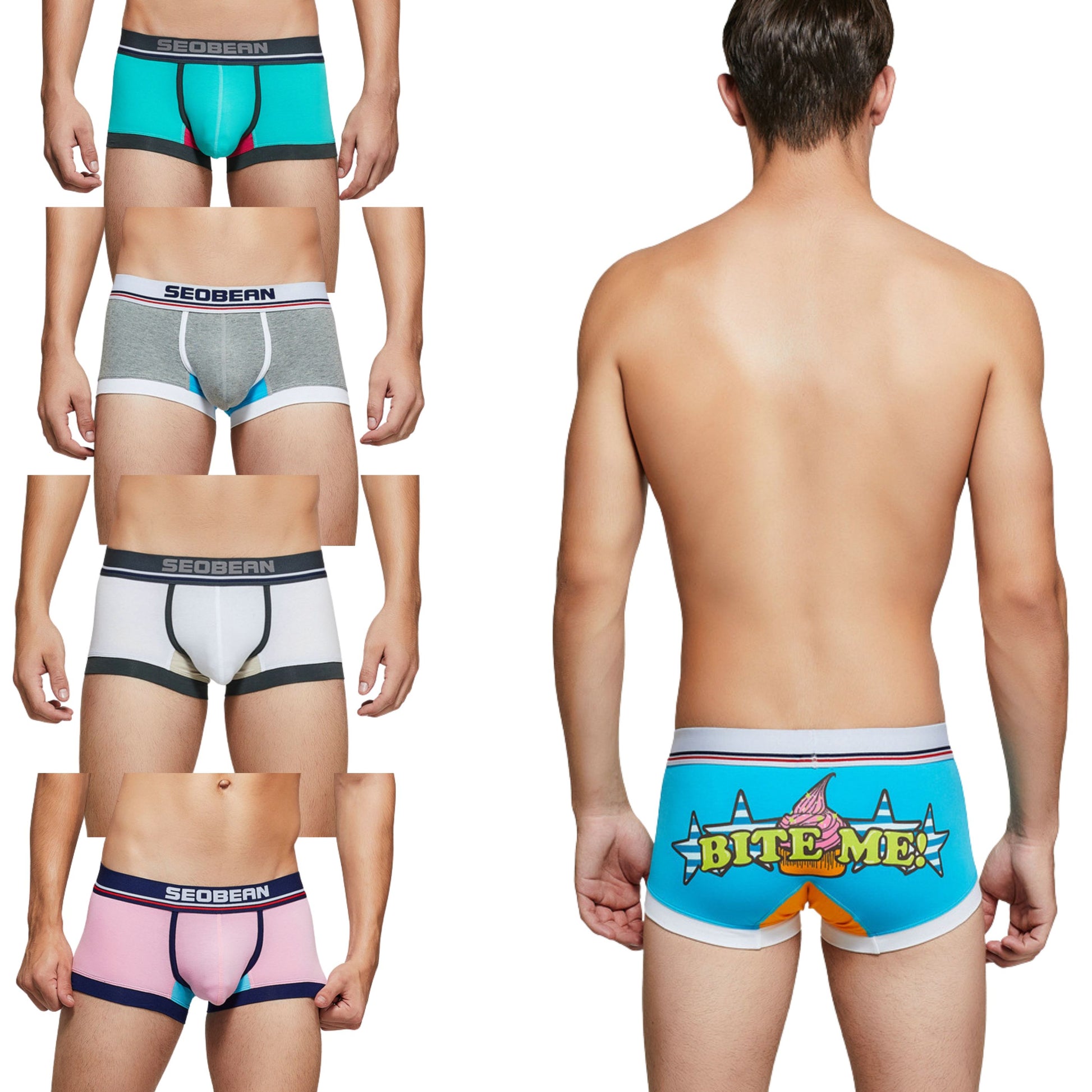 5 pieces SEOBEAN Men's cotton underwear comfortable sweat-wicking boxers men's bump shorts