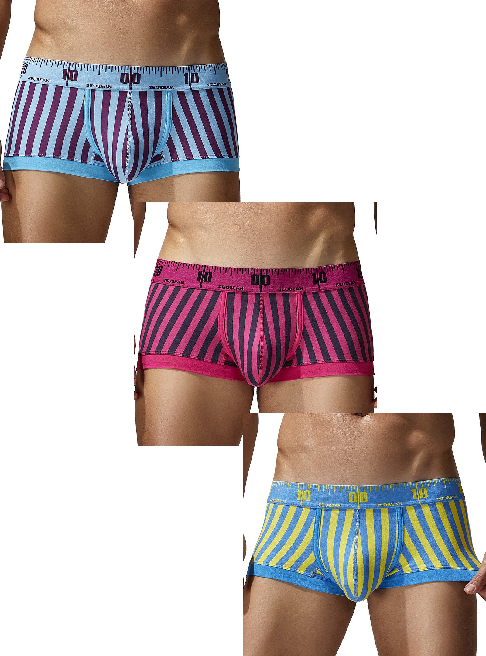 3-Pack SEOBEAN Men's Low Waist Printed Dragon Boxer Briefs U-Shaped Comfortable Lightweight Fashion Innerwear