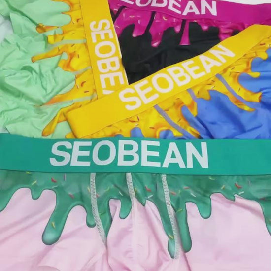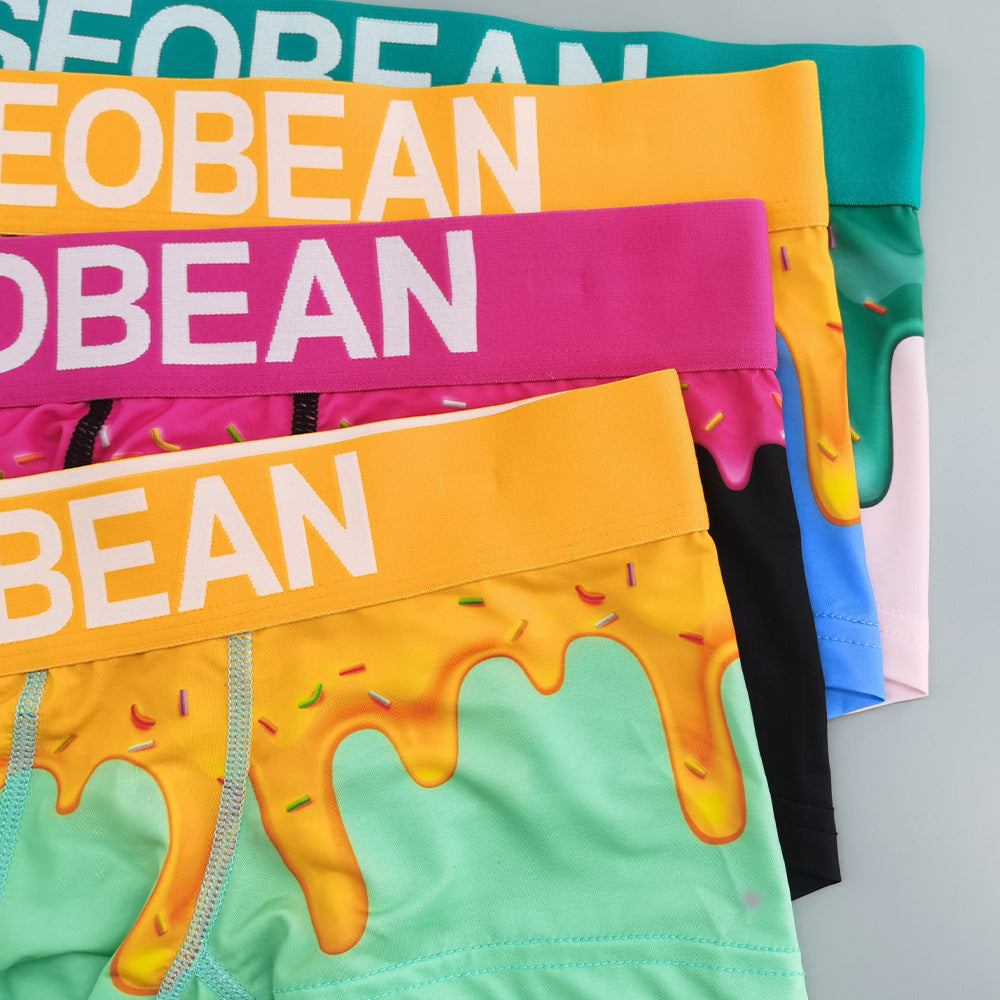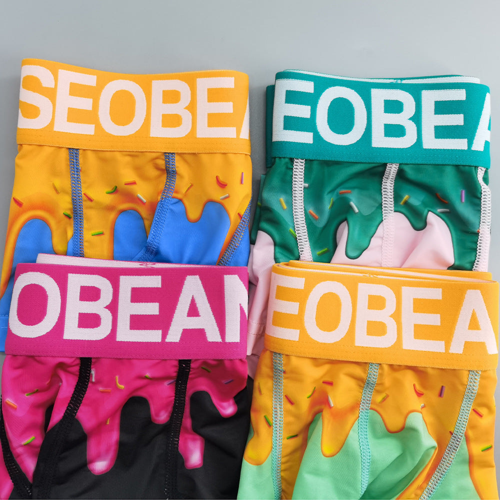 4-Pack SEOBEAN Floral pattern Men's Low Waist Printed Dragon Boxer Briefs U-Shaped Comfortable Lightweight Fashion Innerwear