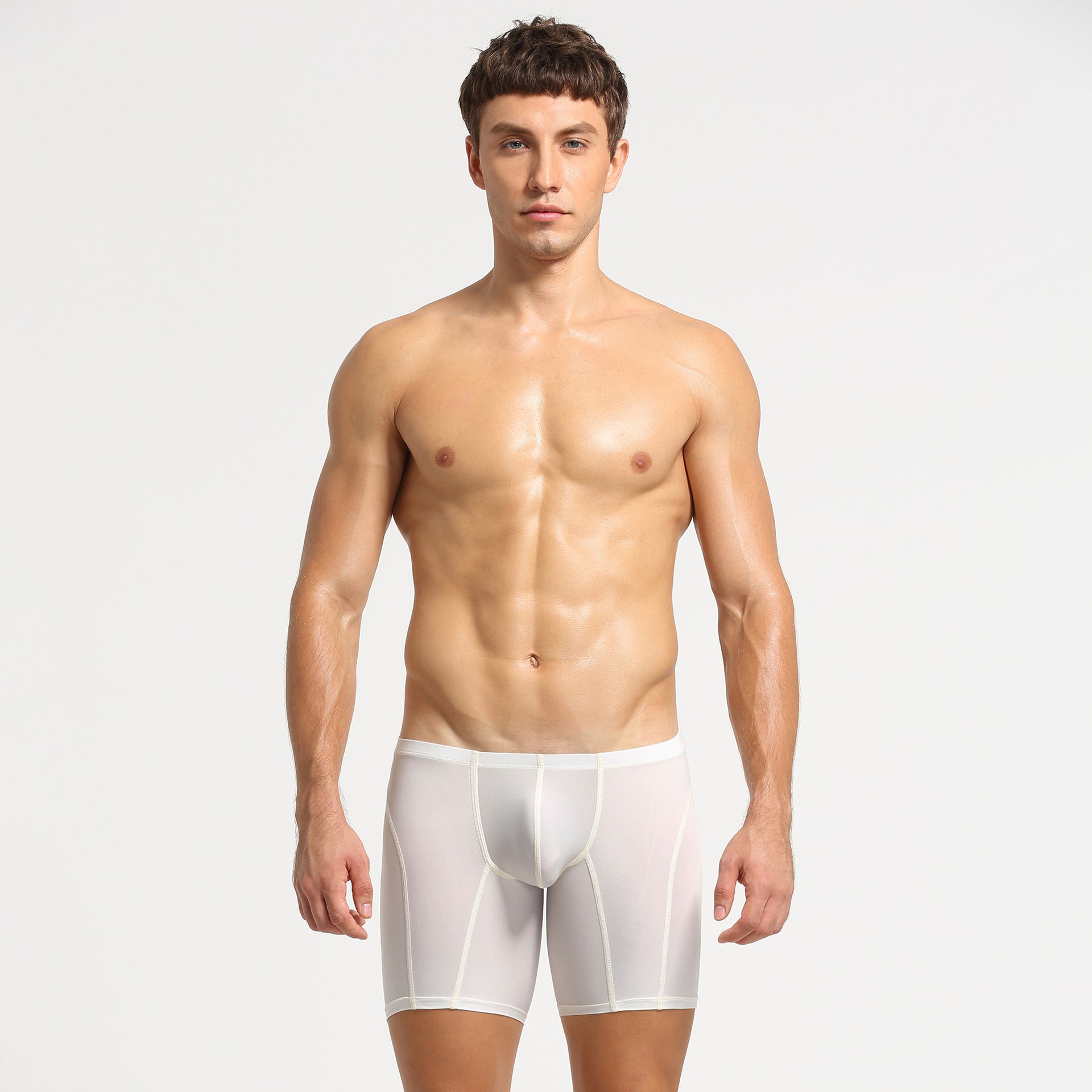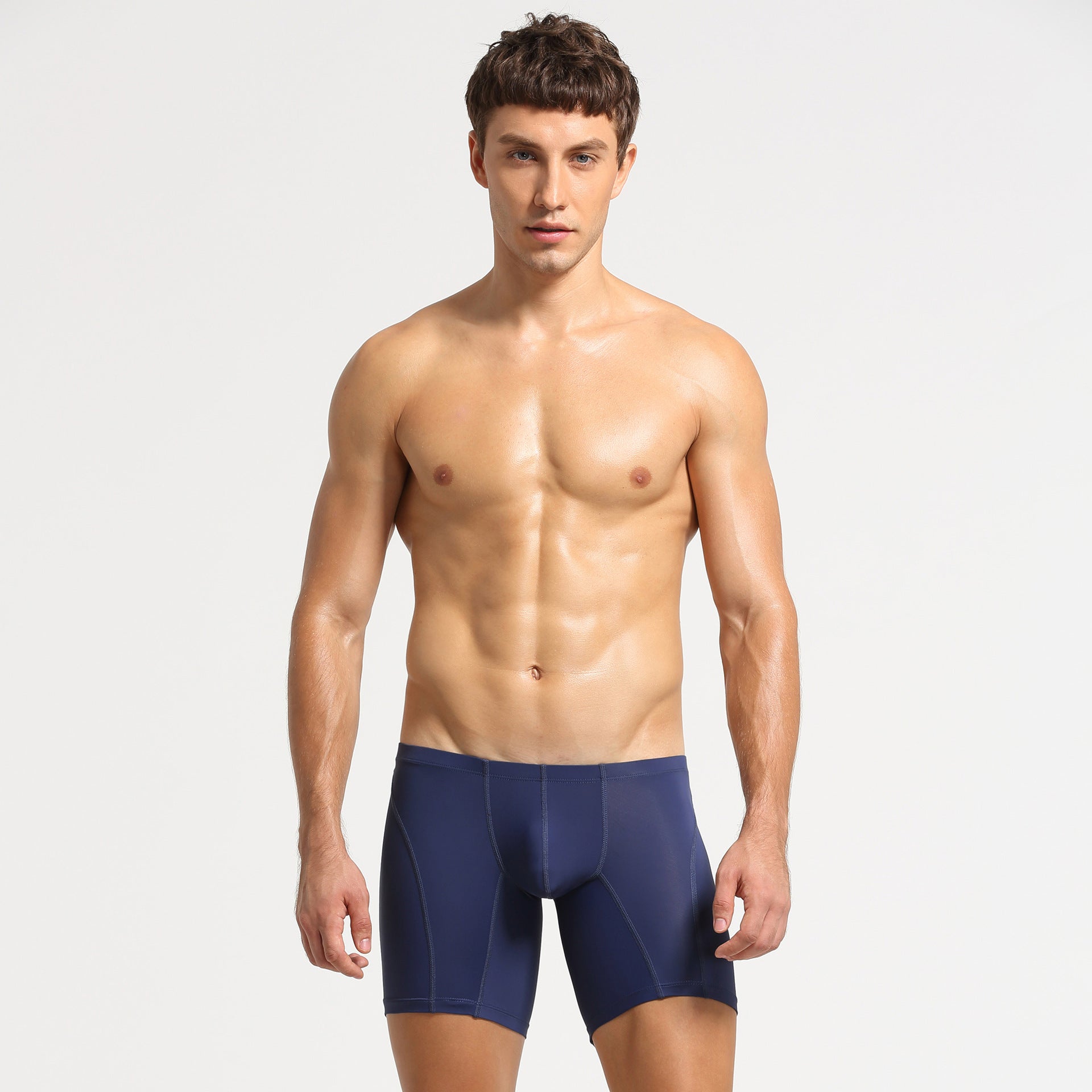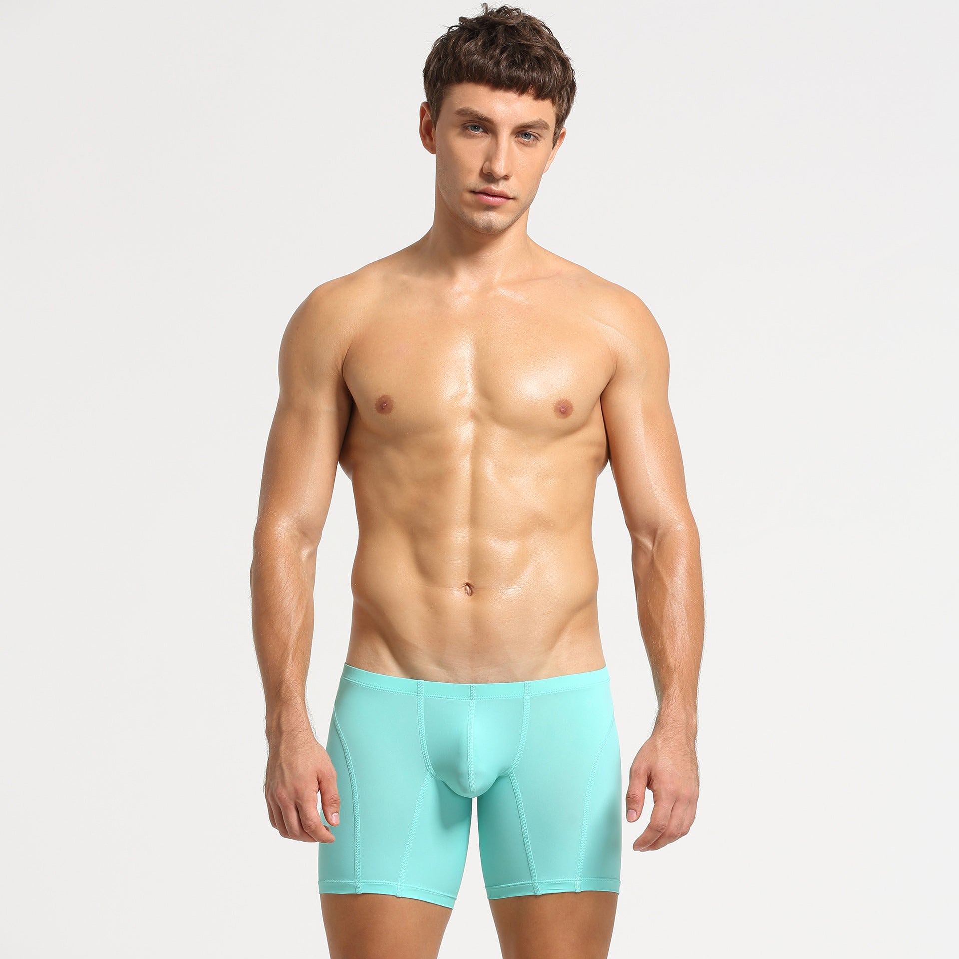 Seobean men's solid underpants low rise slong Boxer shorts Nylon plain U-convex thin low-rise sports leggings